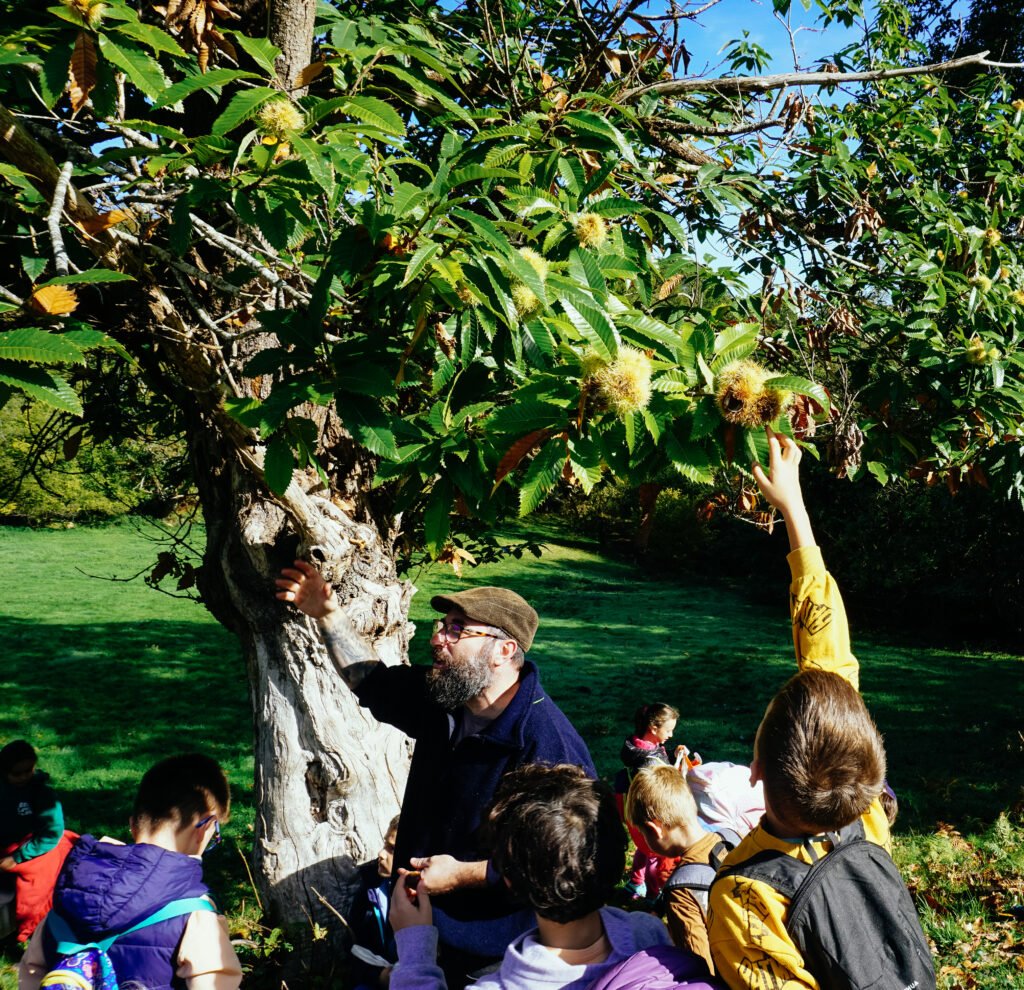 «La gente campesina comía castañas. Quitó mucha fame», les explican a los niños.