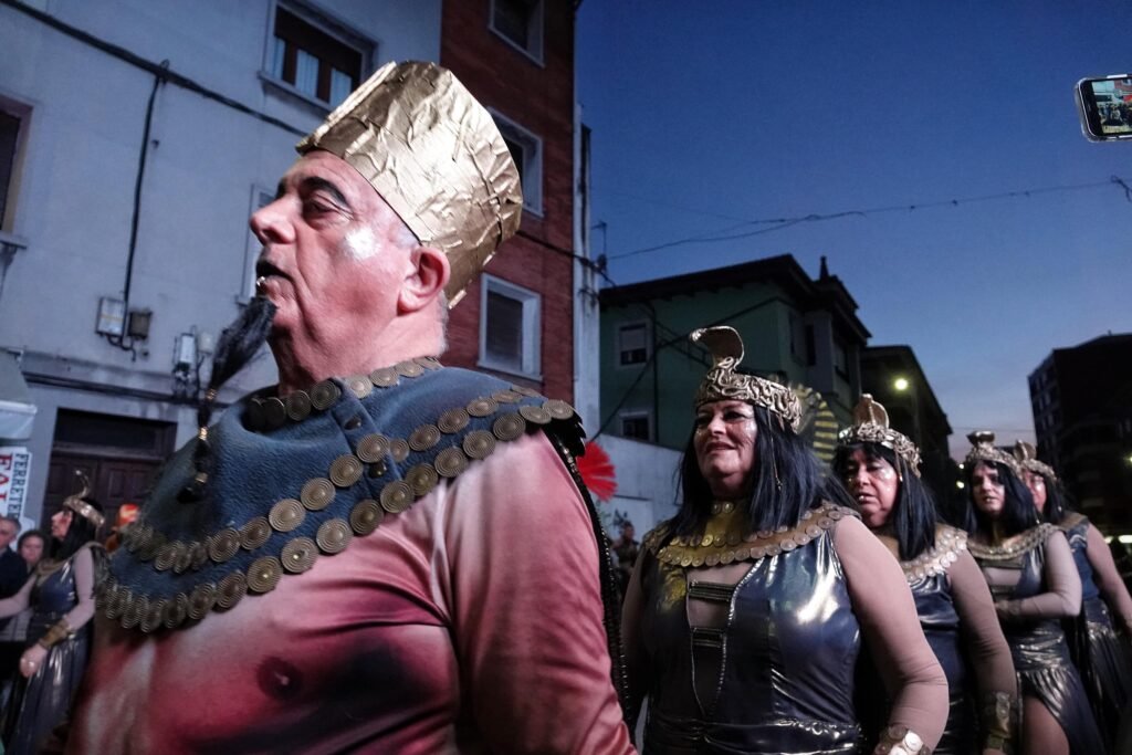 No menos ovacionada resultó la formación de Toriellu, medio centenar de participantes recreando la Danza del León Chino con un ritmo contagioso y ese humor que los ha convertido en clásicos del carnaval parragués. A su paso, el público abría pasillo entre móviles en alto y risas. También destacó Dioses del Nilo, una de las comparsas más numerosas, que llegaba a Arriondas tras subir al podio en A Coruña.