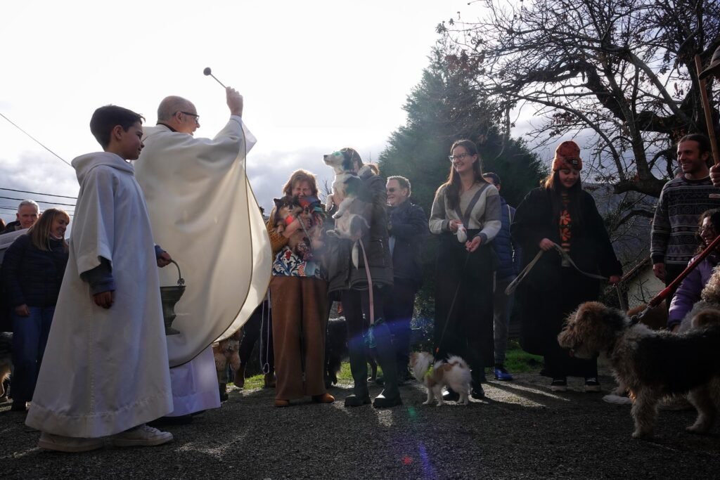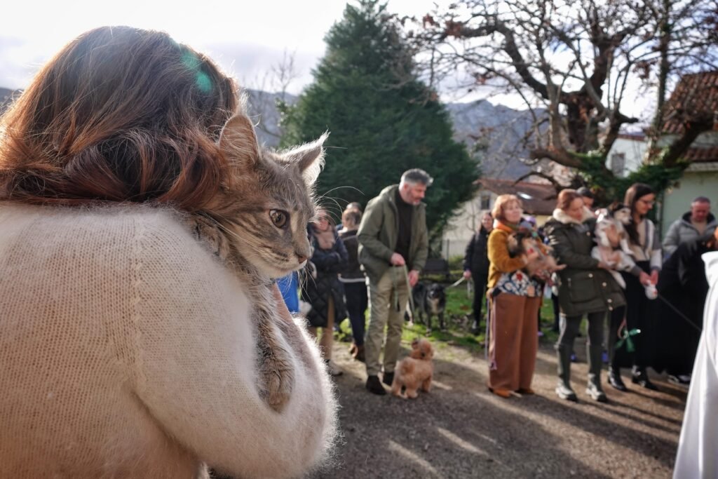 Más de doscientas personas y otros tantos perros, gatos, yeguas y caballos se dieron cita dentro y fuera de la iglesia parroquial del pueblo llanisco