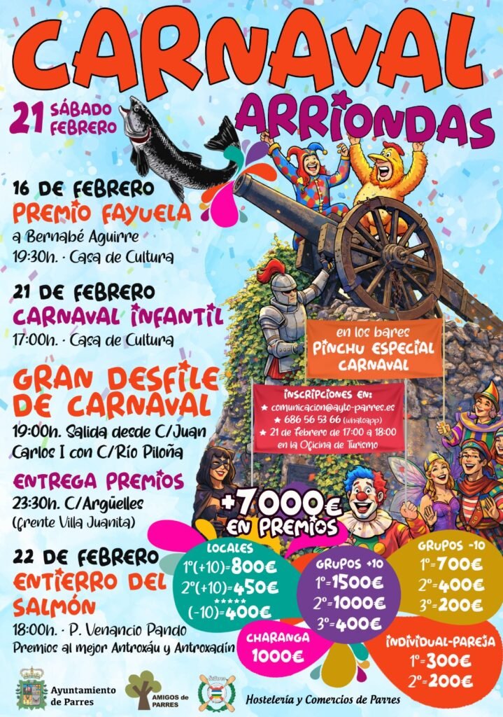 Arriondas volverá a convertirse desde este próximo fin de semana en uno de los grandes epicentros del carnaval en el oriente de Asturias, con una programación que se extenderá del 16 al 22 de febrero y que reunirá actividades culturales, propuestas familiares y uno de los desfiles más concurridos de la comarca.