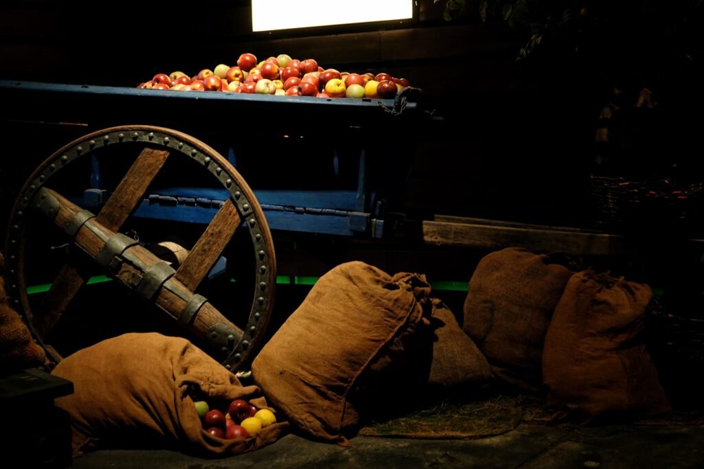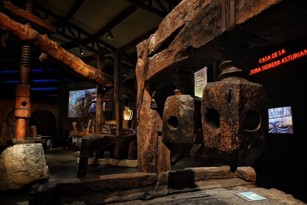 El llagar merece por sí solo otro caudal léxico. Alrededor de treinta términos nombran sus partes, sus piezas y sus mecanismos, desde las grandes estructuras de madera hasta los elementos más específicos del proceso de prensado: aguya, banzu, chaplón, cruceta, duernu, engüelgu, fusu, masera…
