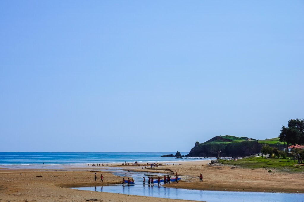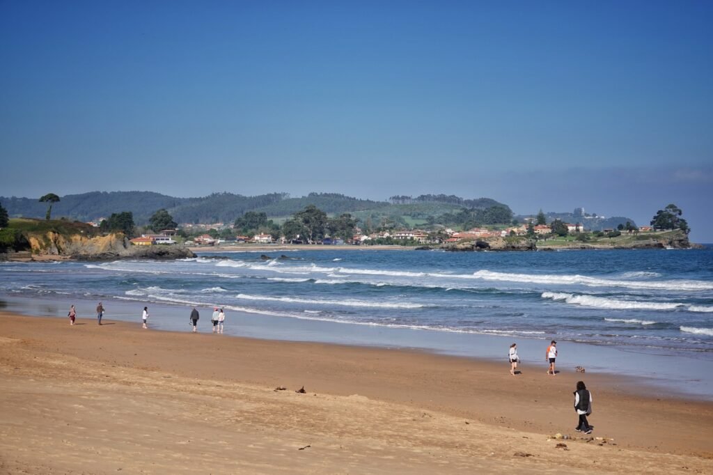 Desde la orilla, al alzar la vista hacia el interior, la silueta del Sueve recuerda el trayecto recién realizado y permite entender la relación entre montaña y costa desde otra perspectiva.