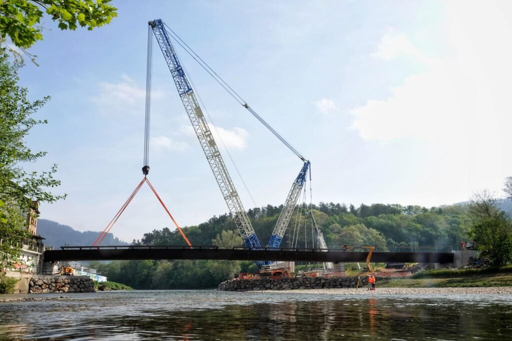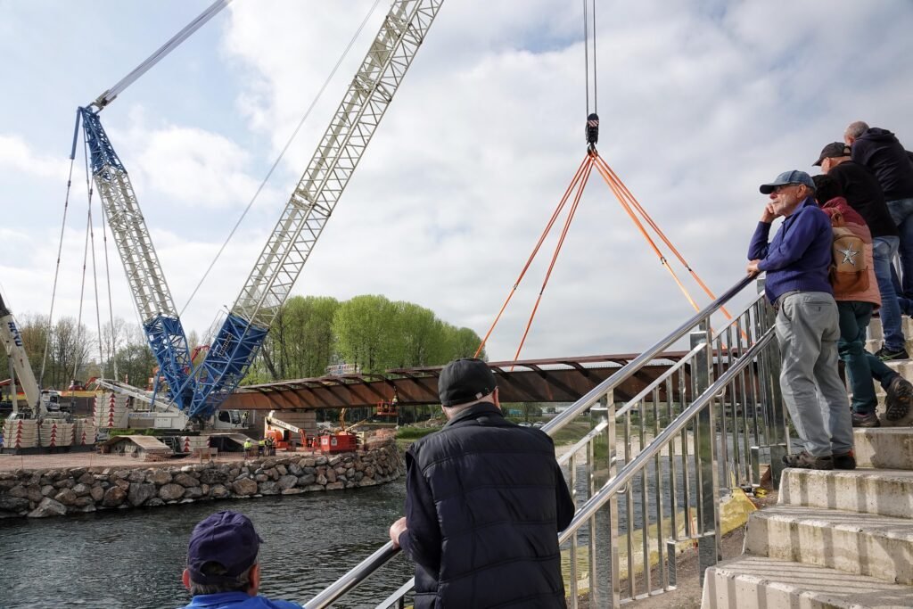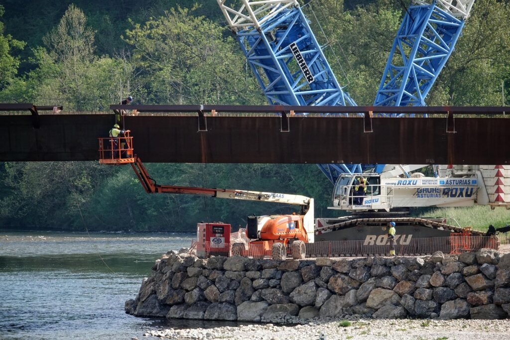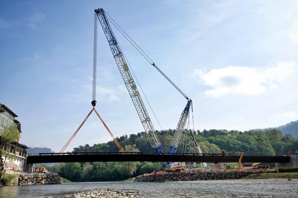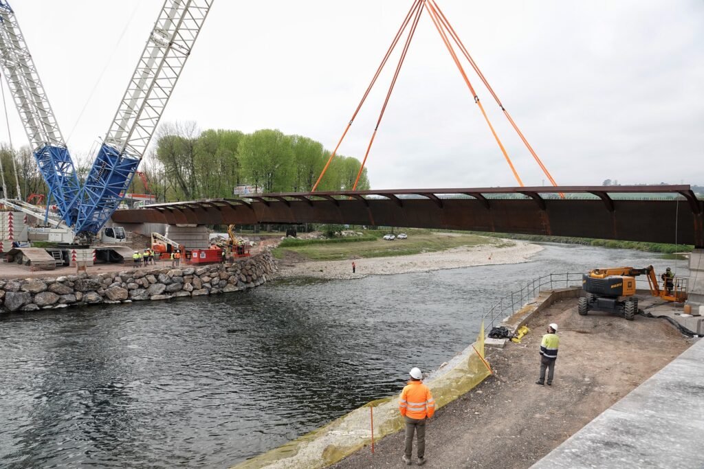 Con ella, encaja el conjunto. A la pieza de 54,2 metros y 190 toneladas instalada el día anterior se suma ahora esta segunda viga, configurando el soporte del futuro tablero de 96 metros. El resultado es inmediato: el puente ya se reconoce, ya se intuye cómo será su presencia definitiva.