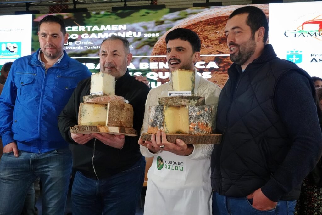 Finalmente, llegó el momento más esperado: la entrega de premios al Gamonéu del Puertu, una variedad elaborada en los pastos más altos de los Picos de Europa, de la que hoy solo quedan tres productores. El tercer premio fue para Gumartini, el segundo para Uberdón y el primer puesto para Remis, que se llevó los laureles de esta edición.