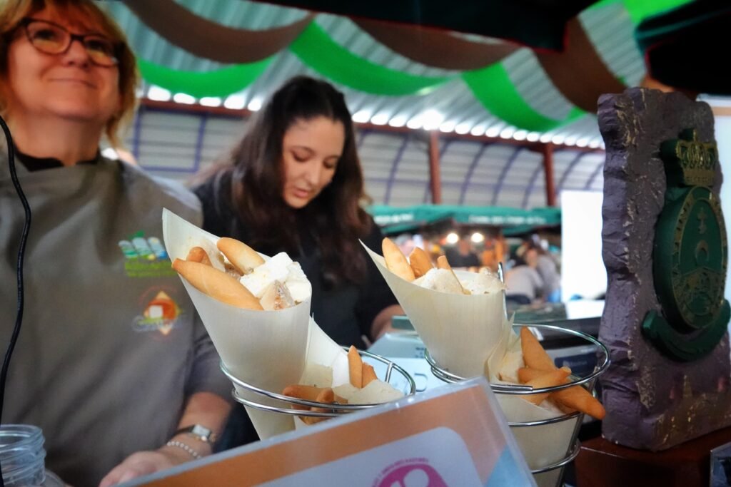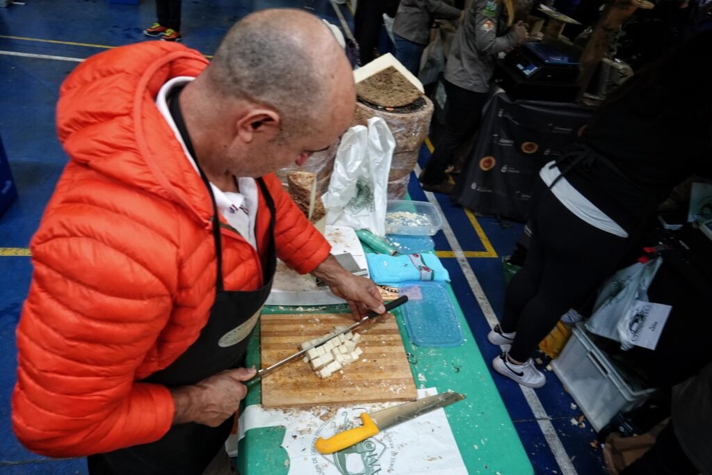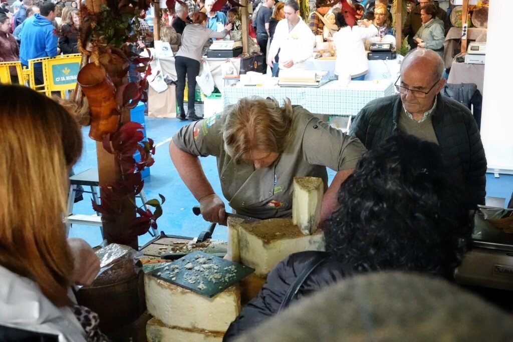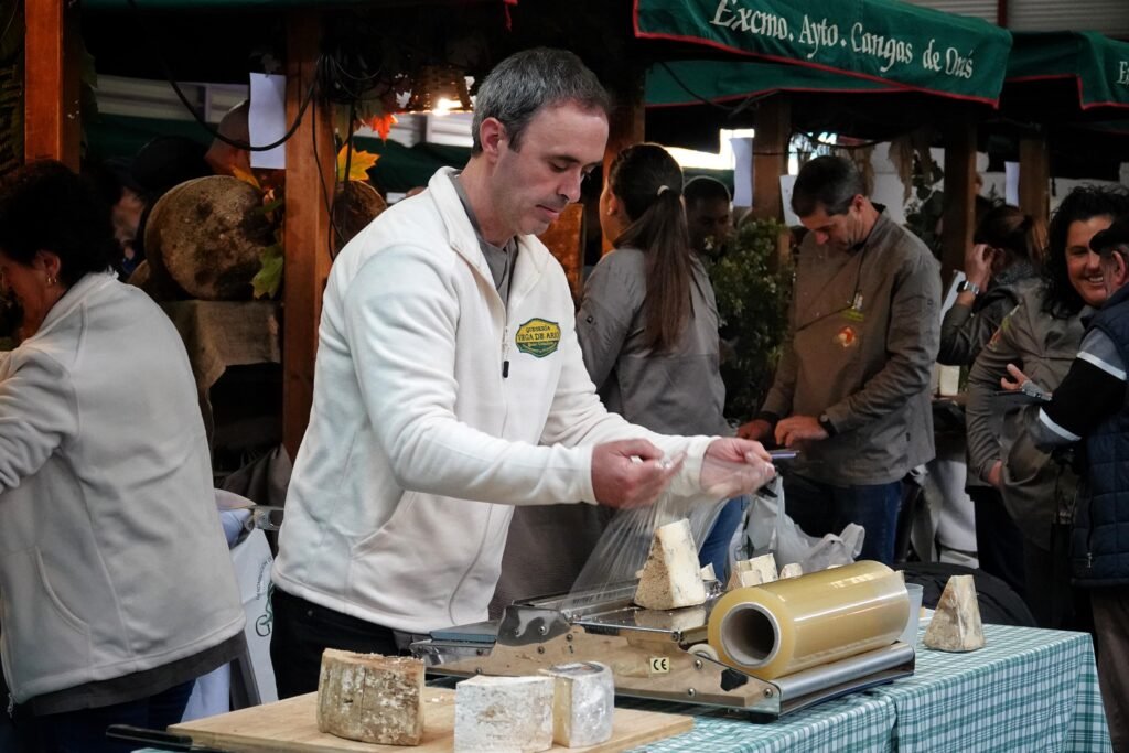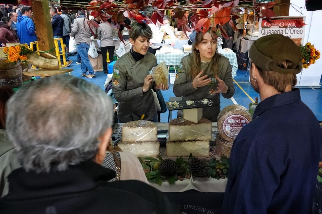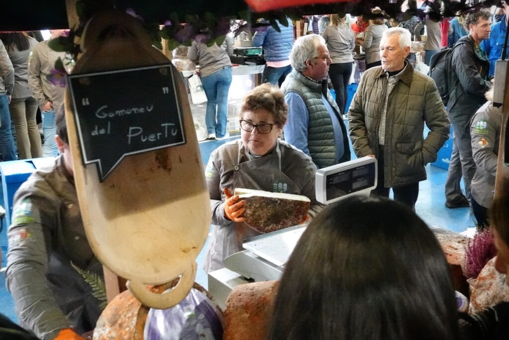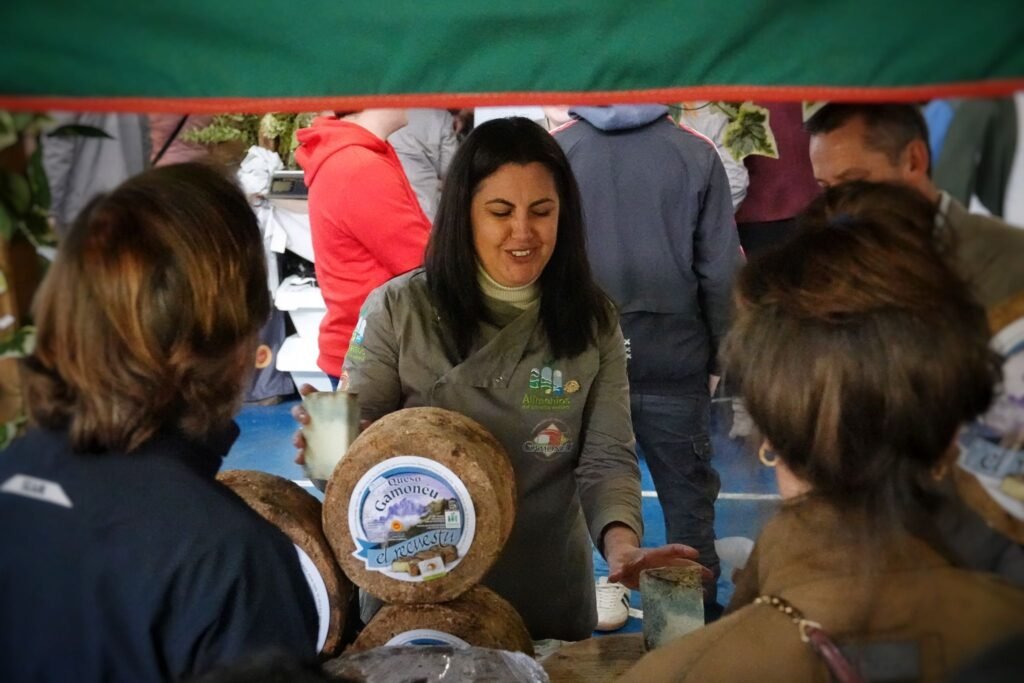 Bajo la gran carpa se congregaron 14 elaboradores —11 de Gamonéu del Valle y 3 del Puertu— que pusieron a la venta más de 1.500 kilos de producto. Acompañaban la oferta gastronómica vinos de la DOP Cangas, sidra, mieles, membrillos y otros productos de kilómetro cero en un mercado rebosante de vida, sabor y autenticidad.