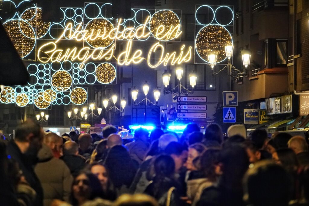 Como ya es tradición, las fiestas arrancaron con el encendido de la iluminación, un acto celebrado este año en el Parque Riera para disfrutar de una mayor amplitud de vistas y comodidad del público. De pulsar el botón se encargaron los más pequeños, el alcalde de Cangas de Onís, José Manuel González Castro, y los concejales Mónica Gutiérrez, Blanca Bueno, Agustín García y Severino Asprón.