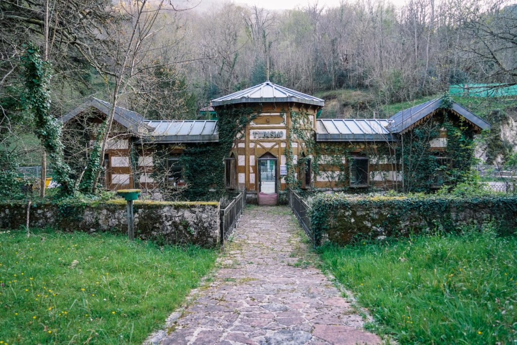 Frente a ese monumento, la antigua estación del tranvía conecta Covadonga con otra historia menos conocida. Entre 1908 y 1933, esa línea conectaba Arriondas con el santuario, facilitando tanto el traslado de viajeros como de mercancías.