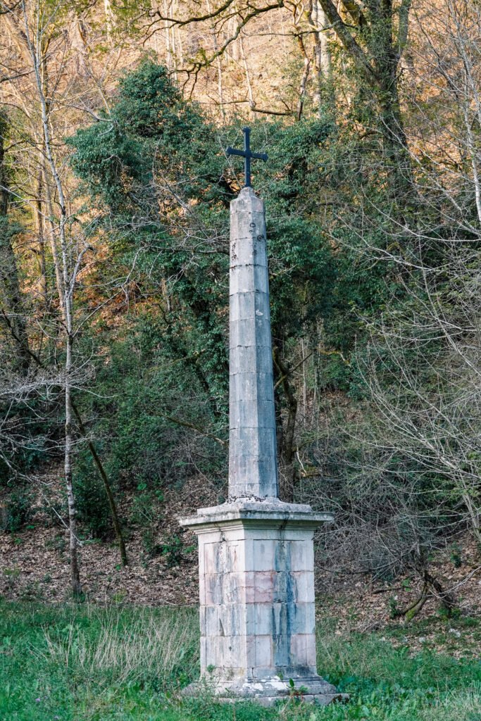 Siguiendo la ruta hacia la santa cueva, antes de entrar al túnel, un elemento pasa desapercibido, pero que sin embargo es una de las piezas más antiguas de todo el santuario: la Cruz del Peregrino.