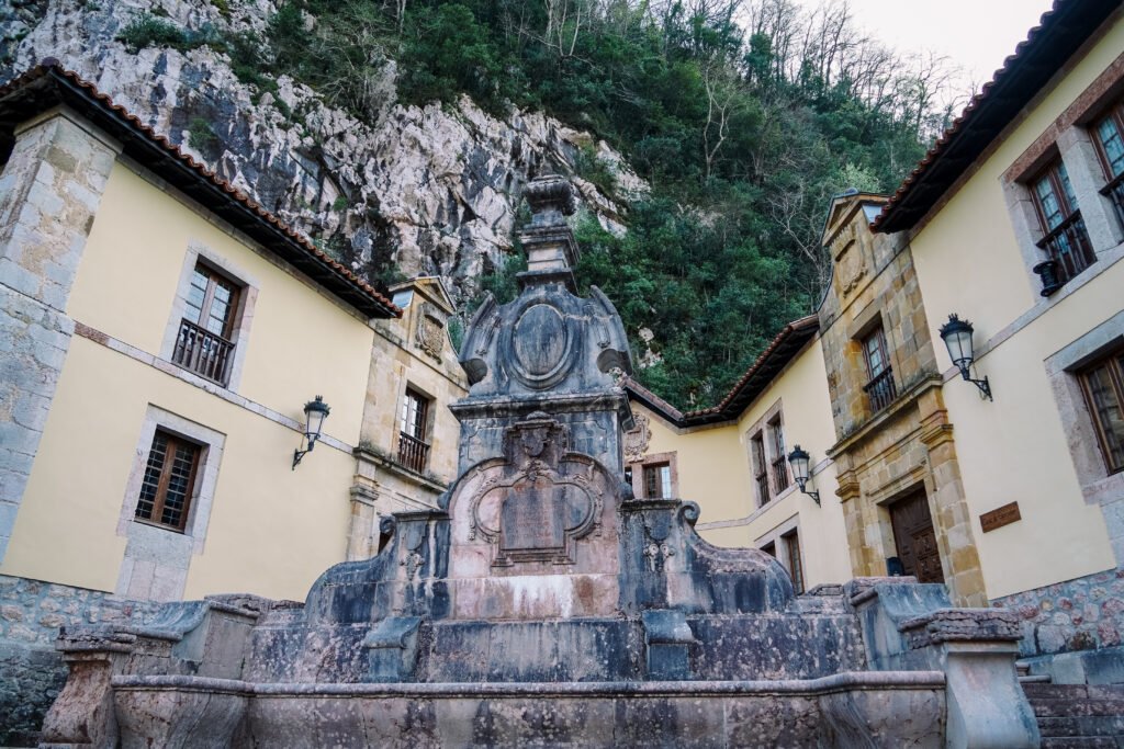 Data de 1676 y, desde su origen, estuvo vinculada al tránsito de caminantes y devotos. Estuvo en el puente del antiguo Mesón de Peregrinos, luego a la entrada del cementerio —sí, Covadonga también tiene su propio camposanto— y en 2023 volvió a un lugar protagonista. Al lugar que hoy ocupa llegó por decisión del entonces abad, Adolfo Mariño.