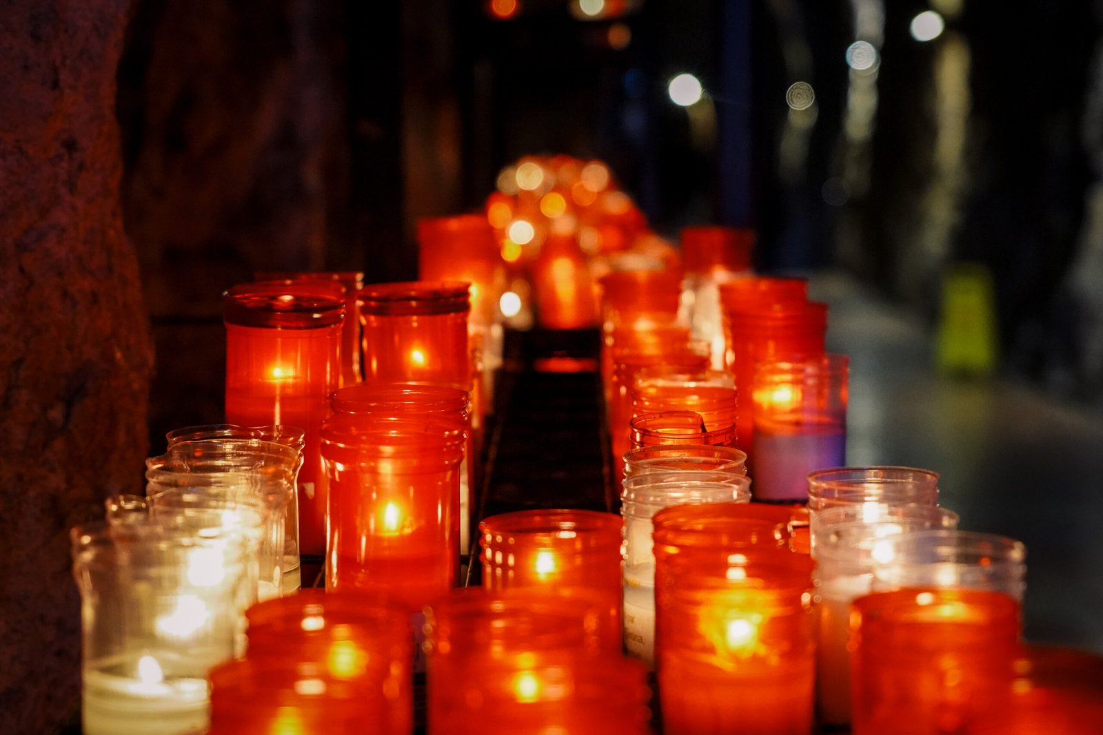 El túnel cambia el ritmo. Luz tenue, silencio… y velas. Decenas de velas dan la entrada en los primeros metros de oscuridad.