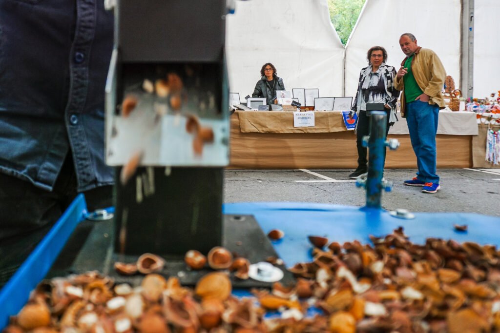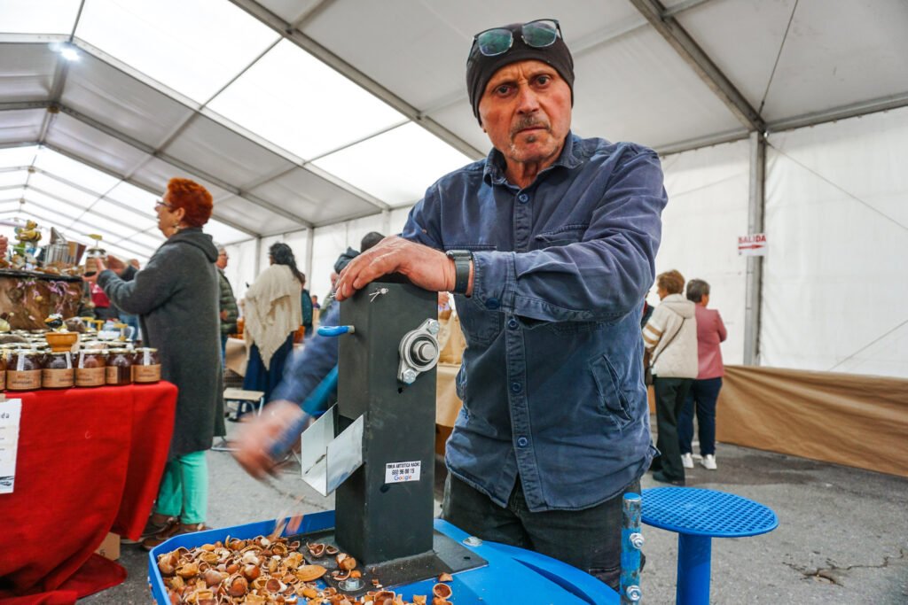 Además de ablanes, en la plaza del Ganáu de Infiestu se pudieron ver este domingo curiosidades como una máquina picadora de frutos secos ideada por Forja Artística Nacho, de Ponferrada. No faltaron productos agroalimentarios de todo tipo, así como el tradicional mercadillo a lo largo de toda la avenida Covadonga.