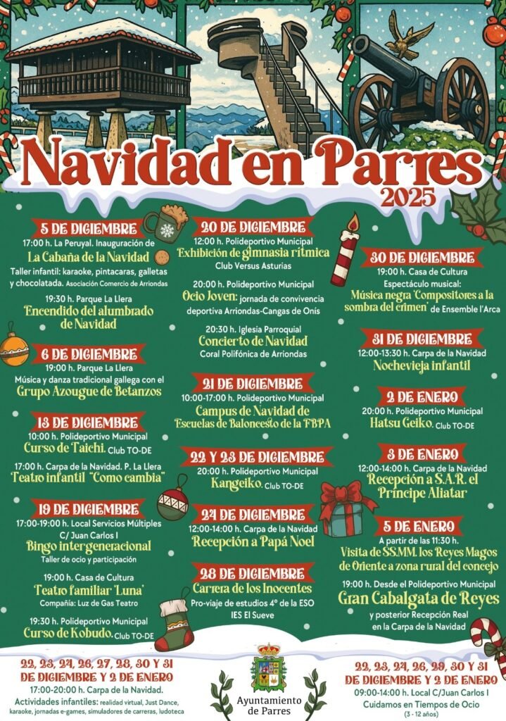 - 🎶 20:30 h – Concierto de Navidad de la Coral Polifónica de Arriondas en la Iglesia Parroquial