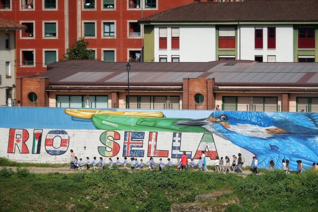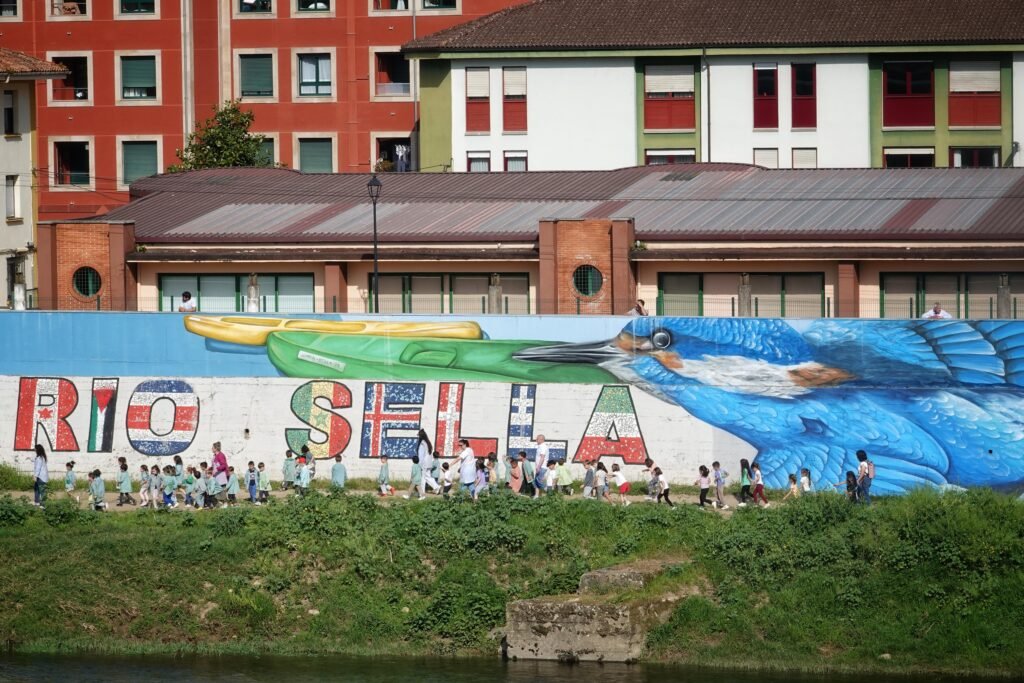 Desde primera hora, todos los ojos se volvieron hacia el río para presenciar el momento. Fue incluso el día de estreno no oficial del anfiteatro construido junto al Sella, una grada perfecta para la ocasión: llena, expectante, mirando al cielo por momentos.