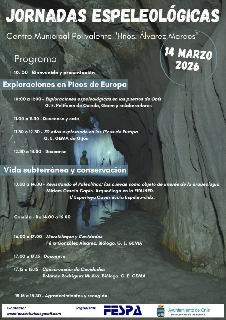 El concejo de Onís acogerá este sábado 14 de marzo de 2026 las Jornadas Espeleológicas organizadas por la Federación de Espeleología del Principado de Asturias (FESPA), un encuentro de carácter técnico y divulgativo que reunirá a especialistas, investigadores y aficionados al mundo subterráneo. El objetivo de la cita es abordar distintos aspectos relacionados con la exploración, la conservación y el conocimiento científico de las cavidades naturales.