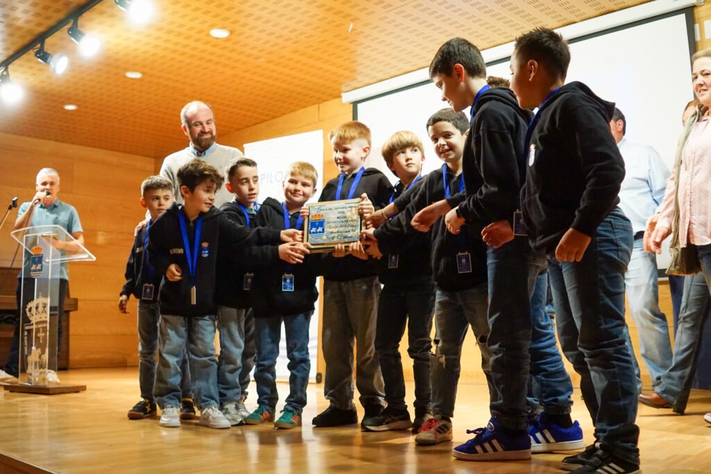En categoría infantil, el reconocimiento fue para el equipo minibenjamín de fútbol sala del Colegio L’Ablanu, que completó una campaña impecable en los Juegos Deportivos del Principado con pleno de diez victorias en diez partidos. De ese conjunto de invencibles forman parte Juan Aguado Martínez, Álvaro Álvarez Balbín, Luis Blanco Blanco, Leo Diego Blanco, Izan García López, Martín Medina Vigón, Daniel Ordieres Rodríguez, Dylan Sánchez Pavel, Hugo Vega Álvarez y Alexandre Periquito Mesa.