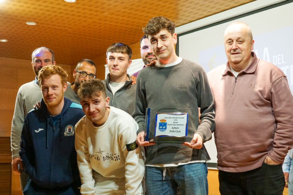 El premio a la mejor trayectoria deportiva reconoció al Infiesto Fútbol Sala, un referente que lleva más de dos décadas compitiendo al máximo nivel autonómico con una base de jugadores del propio concejo. En 2025 cerró la temporada con un cuarto puesto en Tercera División, en una andadura que suma ya 26 campañas, solo interrumpidas por la pandemia.