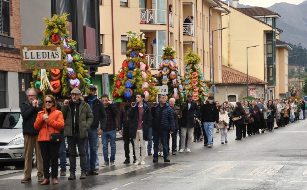 Por las calles desfilaron ocho ramos, dos procedían de la villa de Posada, otro de Orione y cinco restantes de los cinco pueblos que forman la parroquia: Piedra, Quintana, Bricia, Lledías y Turanzas