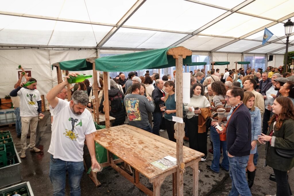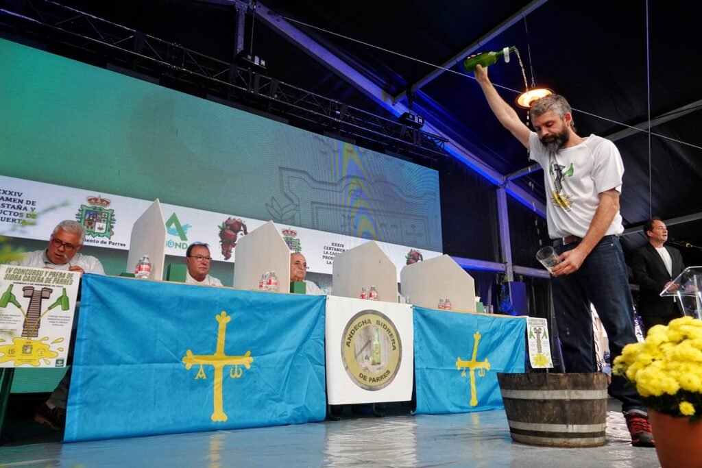 La Plaza del Cañón de Arriondas vivió este domingo una jornada festiva y multitudinaria con motivo de la cuarta Preba de Sidra Casera de Parres, organizada por la Asociación Andecha Sidrera de Parres. La cita, ya consolidada en el calendario local, sirvió como preludio del 34º Certamen de la Castaña y Productos de la Huerta, que se celebrará el próximo fin de semana.
