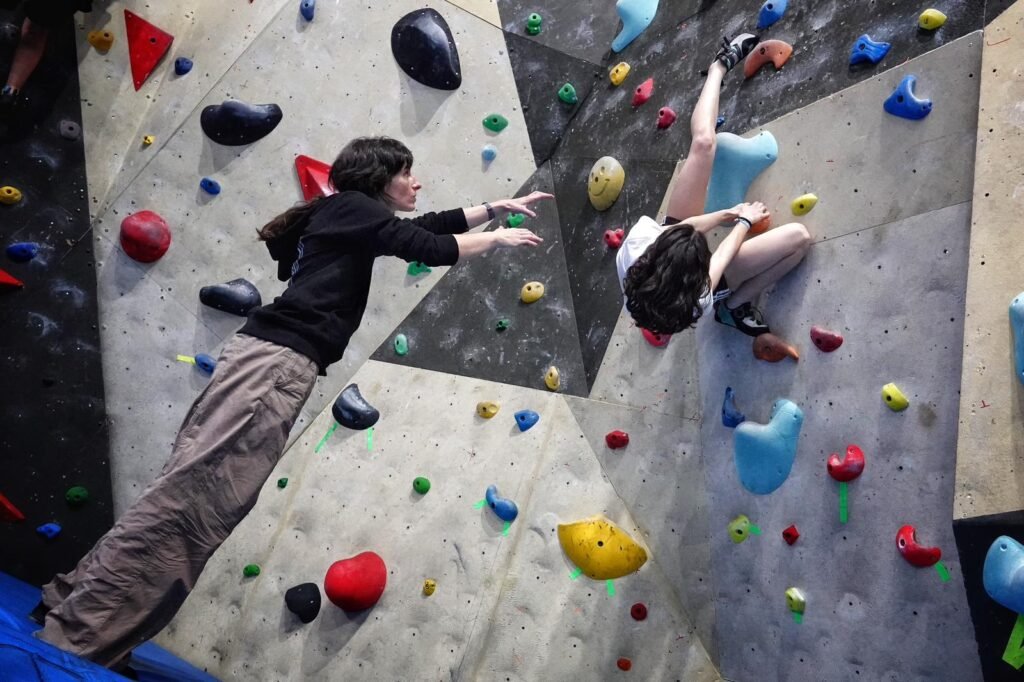 Entre sus apoyos más cercanos también está su amiga Elia. Escalan juntas desde los inicios de las clases en Arriondas y entre ellas se ha formado un vínculo muy especial. Sandra la menciona como alguien importante: cuenta que siempre que está compitiendo, escucha a Elia animándola a voz en grito. Y que ella procura hacer igual cuando su amiga compite.