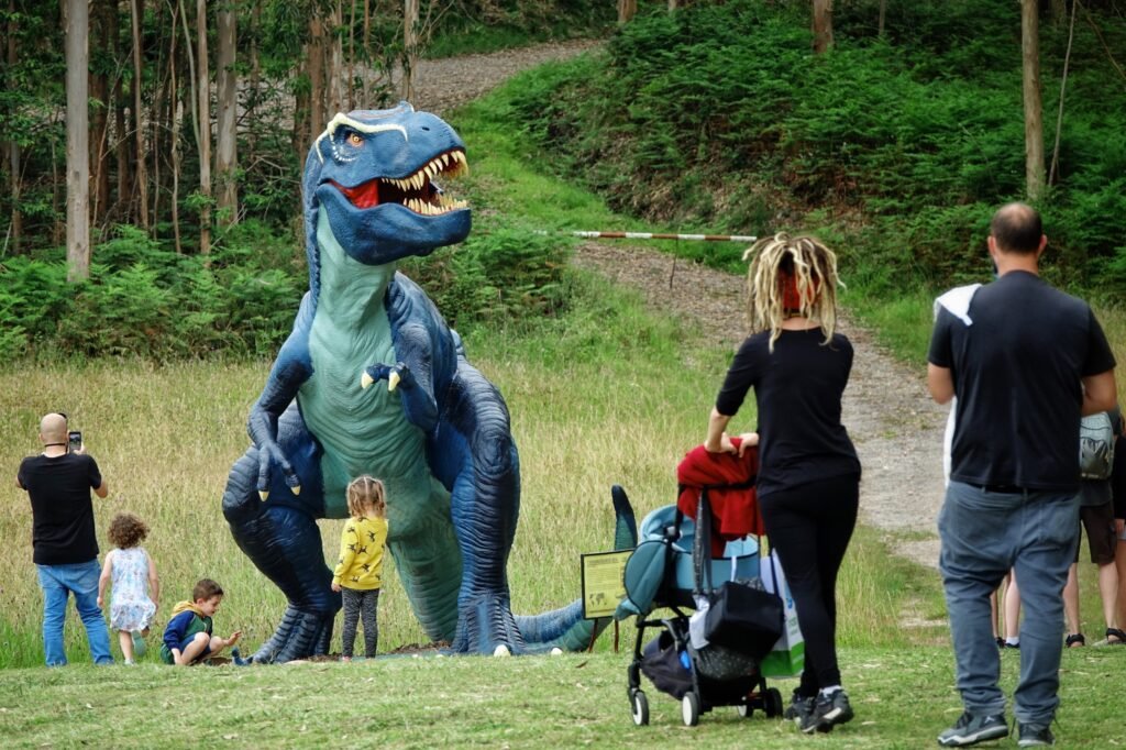 La visita se completa en el exterior, donde réplicas y reproducciones conectan directamente con los yacimientos del entorno. Ese despliegue de figuras de dinosaurio es un paraíso para los niños y una excusa siempre perfecta para la visita.